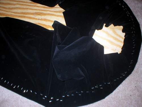 The pic to the left is Cory's insert, and he went with a royal purple. The material was a stretched velveteen. The fabric did stretch quite a bit, so we had to make sure to pull the fabric really tight before stapling.